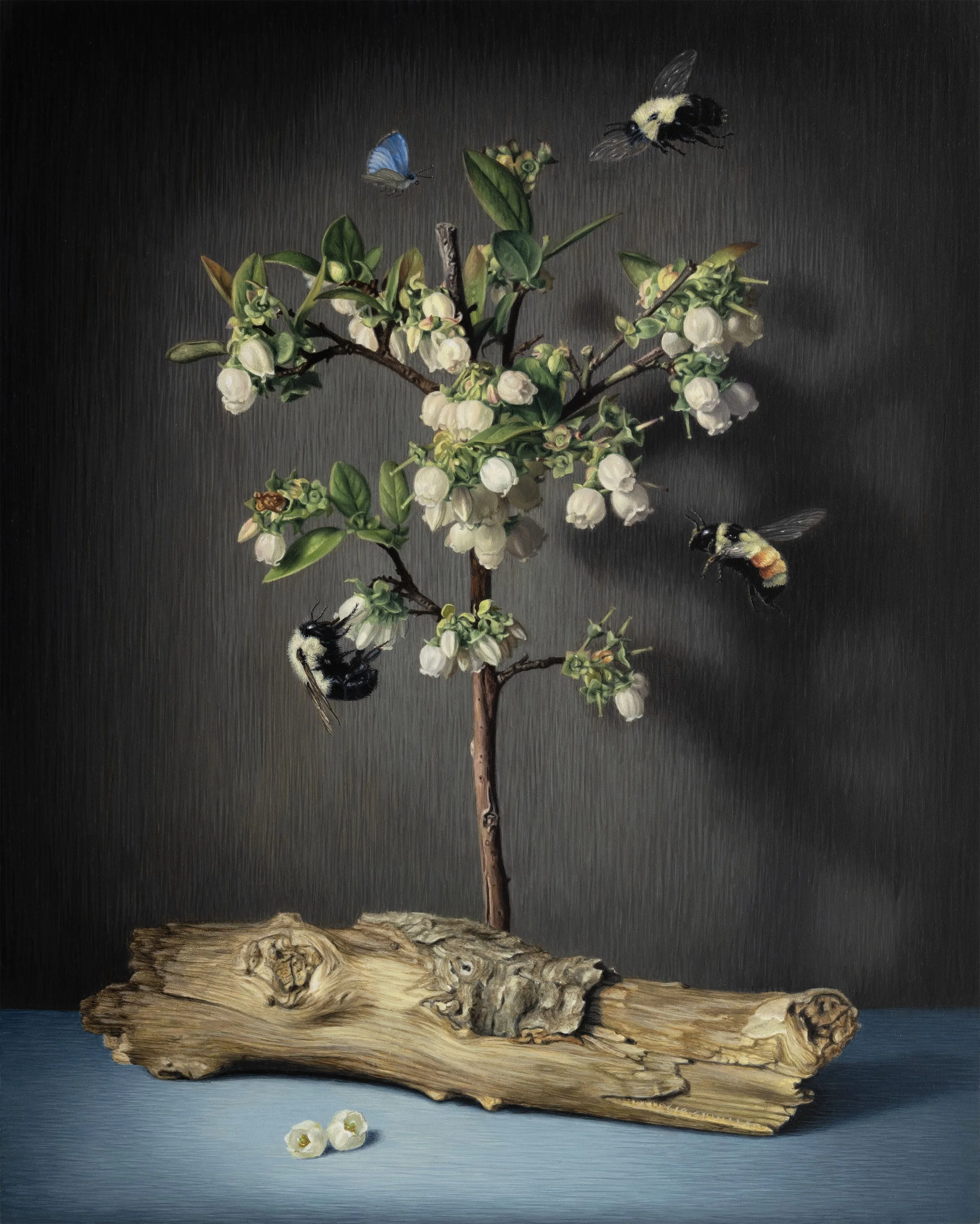 Bumblebees and Blueberry Blossoms 20x16” oil on panel ©2026 SUSAN McDONNELL